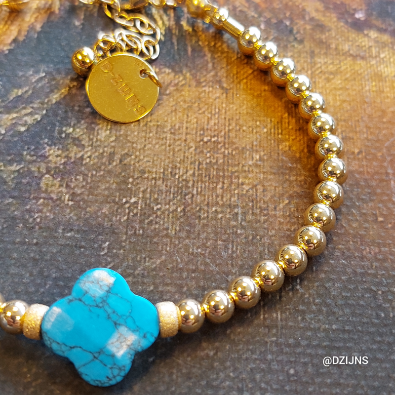 D-ZIJNS ARMBAND KLAVER TURKOOIS 14K 3mm bal
